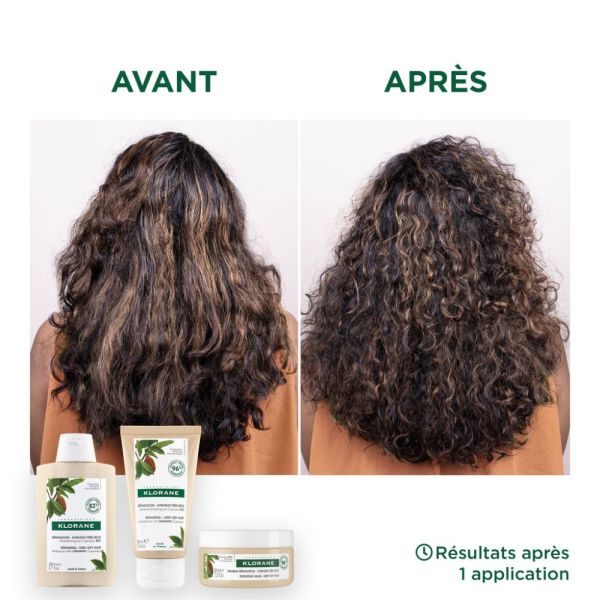 Le Shampoing réparation de Klorane nettoie, nourrit et répare les cheveux très secs, abîmés. Il est idéal pour les cheveux ondulés, bouclés ou frisés. Enrichie en Cupuaçu BIO, sa formule à 83 % d’ingrédients d’origine naturelle débarrasse des impuretés, nourrit et répare la fibre capillaire endommagée. Sa texture dense au parfum rassurant pénètre et se rince rapidement, sans alourdir. Avec ce shampoing aux ingrédients d'origine naturelle et éco-conçu, Klorane veille à préserver l’environnement* tout en prenant soin de vos cheveux._x000D_